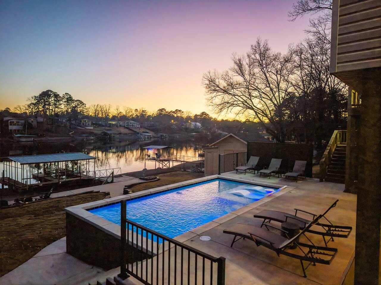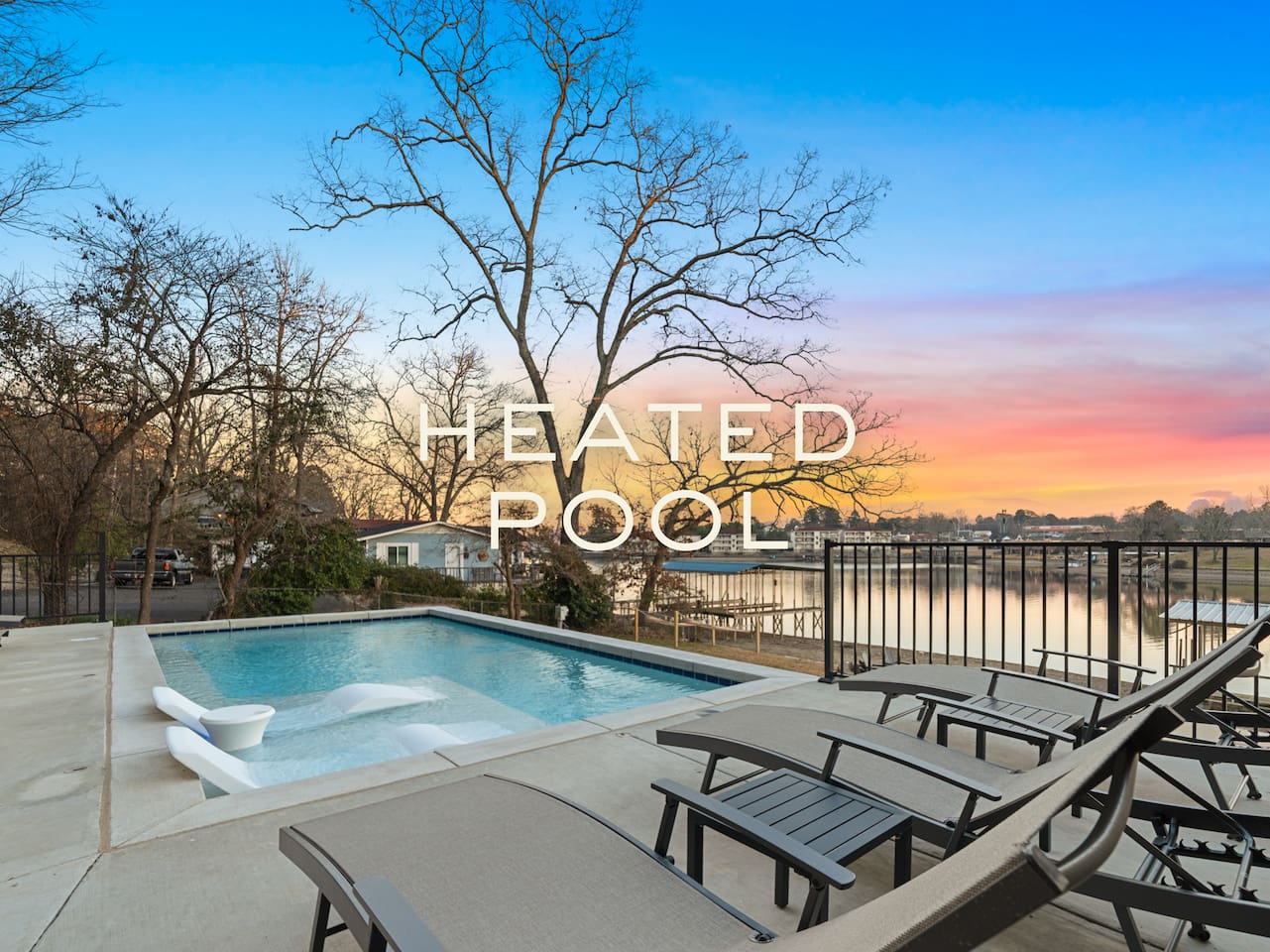 Wake up to sweeping lakefront views, spend your days lounging by the private heated pool, and unwind in the hot tub as the sun sets over the water. Evenings are made for gathering around the lakefront fire pit or enjoying cocktails at the indoor/outdoor pool bar. Rain or shine, the game room keeps everyone entertained. Inside, the home features expansive living areas, upscale finishes, and thoughtfully designed spaces that balance comfort with sophistication—perfect for family vacations, reunions, retreats, or celebration weekends. UNBEATABLE LOCATION 🌊 Direct lakefront access 🎰 12 minutes to Oaklawn Racing Casino & Resort 🏛️ 14 minutes to historic downtown Hot Springs 🚤 Close to boating, hiking, dining, shopping & spas LUXURY AMENITIES ☆☆ 7 beautifully appointed bedrooms ☆☆ Heated private pool & hot tub ☆☆ Two stall boat dock ☆☆ Game room for all ages ☆☆ Indoor & outdoor pool bar ☆☆ Lakefront fire pit with seating ☆☆ Multiple indoor & outdoor gathering areas ☆☆ Peaceful, private setting with quick city access Whether you’re planning a refined lake escape or a memorable group getaway, Poolside Paradise offers the space, style, and amenities to make your stay exceptional.