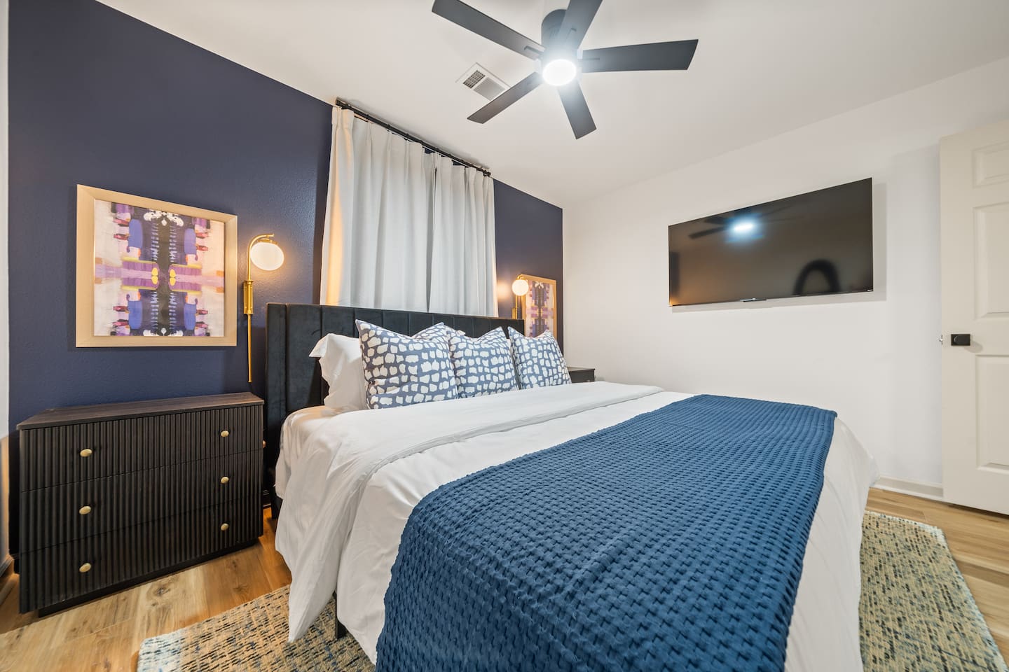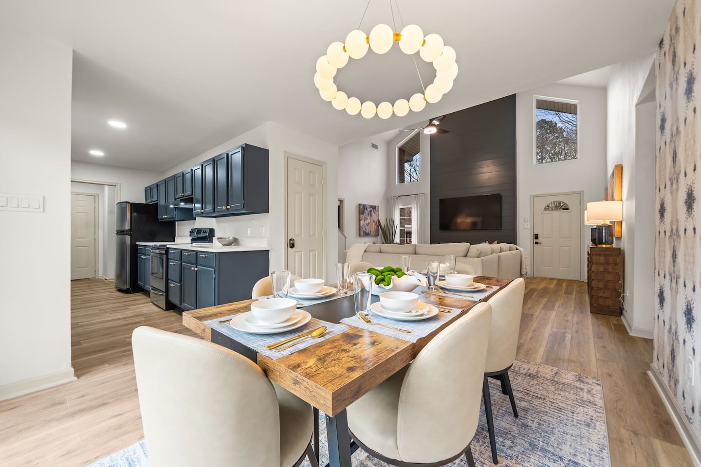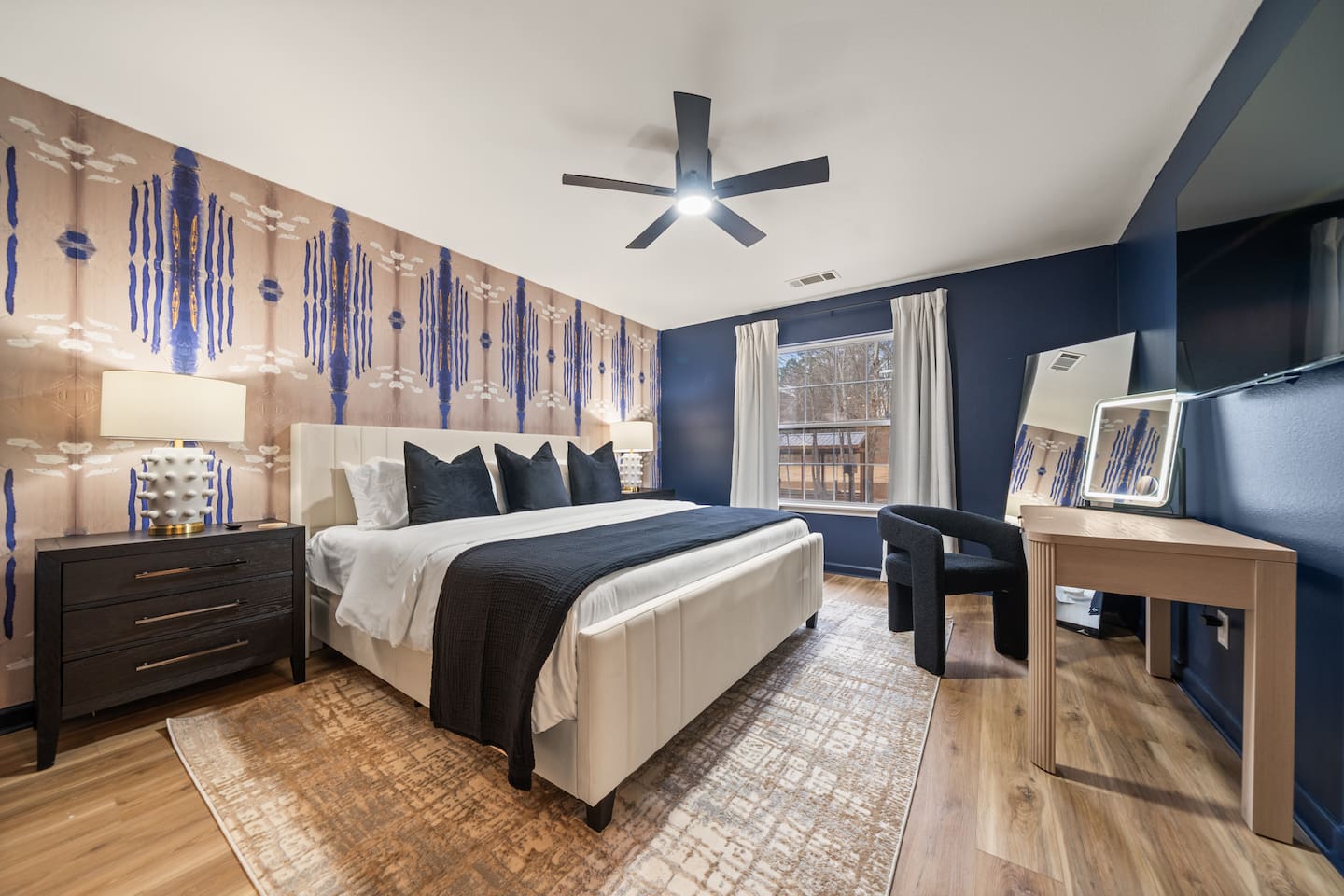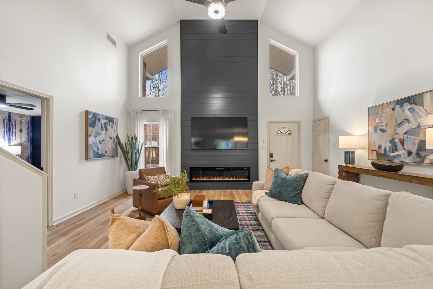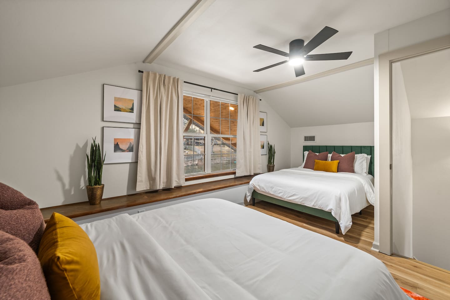 The home comfortably sleeps up to 10 guests and is built for group stays. The main level features three king bedrooms, while the upstairs enclosed loft offers two queen beds. Every bedroom includes a large smart TV, and the primary suite features a dedicated workspace. The private game room anchors the indoor experience with karaoke, pool and shuffleboard tables, and arcade games—perfect for all ages and weather-proof fun. The fully equipped kitchen and open living areas make gathering effortless. Outdoor Living Step outside to direct lake access with a private dock, water ladder, seating, and space to tie up a small boat. Enjoy four complimentary kayaks, relax in the private hot tub, or gather around the lakeside fire pit. A 45-foot covered patio offers space for outdoor dining, lounging, and evening cocktails, plus a small side yard for extra play space. During summer, water surrounds the property front and back—creating enhanced privacy and constant access that’s uncommon on Lake Hamilton. ☞☞HIGHLIGHTS & AMENITIES ☞☞ ✷ Peninsula lakefront home with private dock (sleeps 10) ✷ Water on both sides during summer months ✷ Prime lakefront location with excellent water access ✷ Game room: karaoke, pool table, arcade games & shuffleboard ✷ Private hot tub & lakeside fire pit ✷ Four kayaks included ✷ Large TVs throughout, including living room, game room & patio ✷ High-speed AT&T Fiber Wi-Fi ✷ Fully equipped kitchen & dedicated coffee bar ✷ Ideal for families and relaxed group getaways Whether you’re here to relax, play, or do a little of both, Cape Hamilton delivers the ultimate Hot Springs lakefront experience. Book now and start counting down to lake days, game nights, and unforgettable memories. 🌊🔥🎤