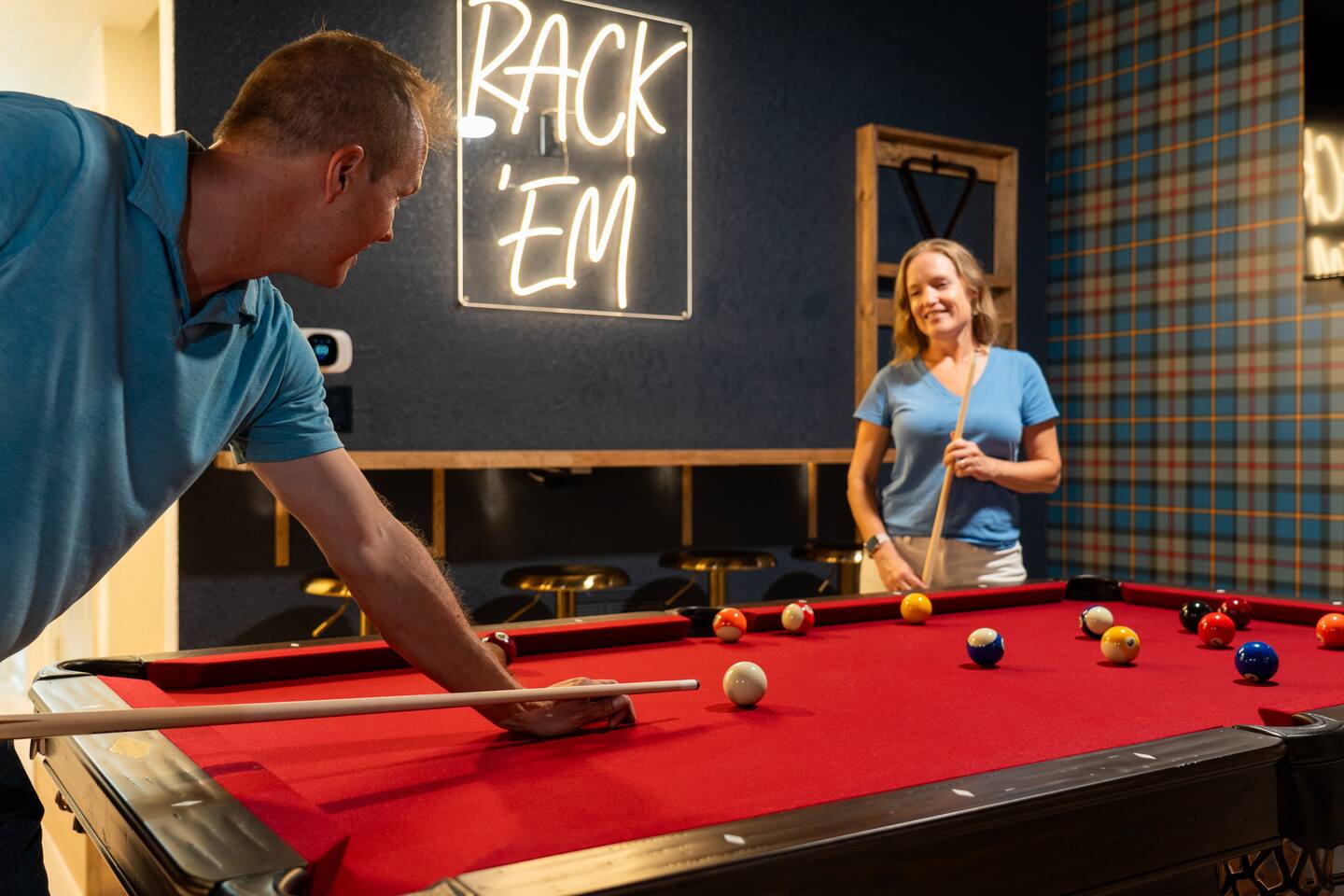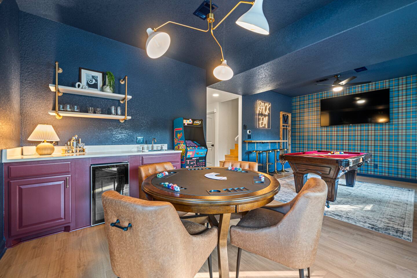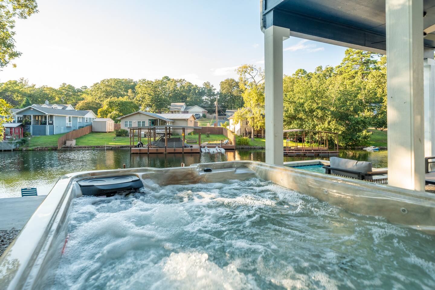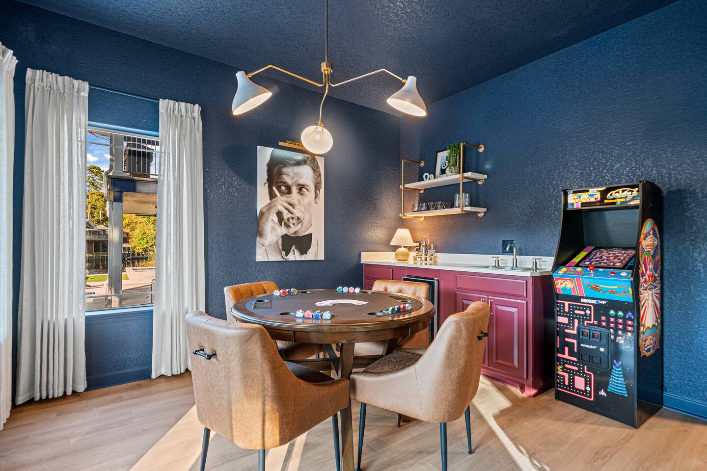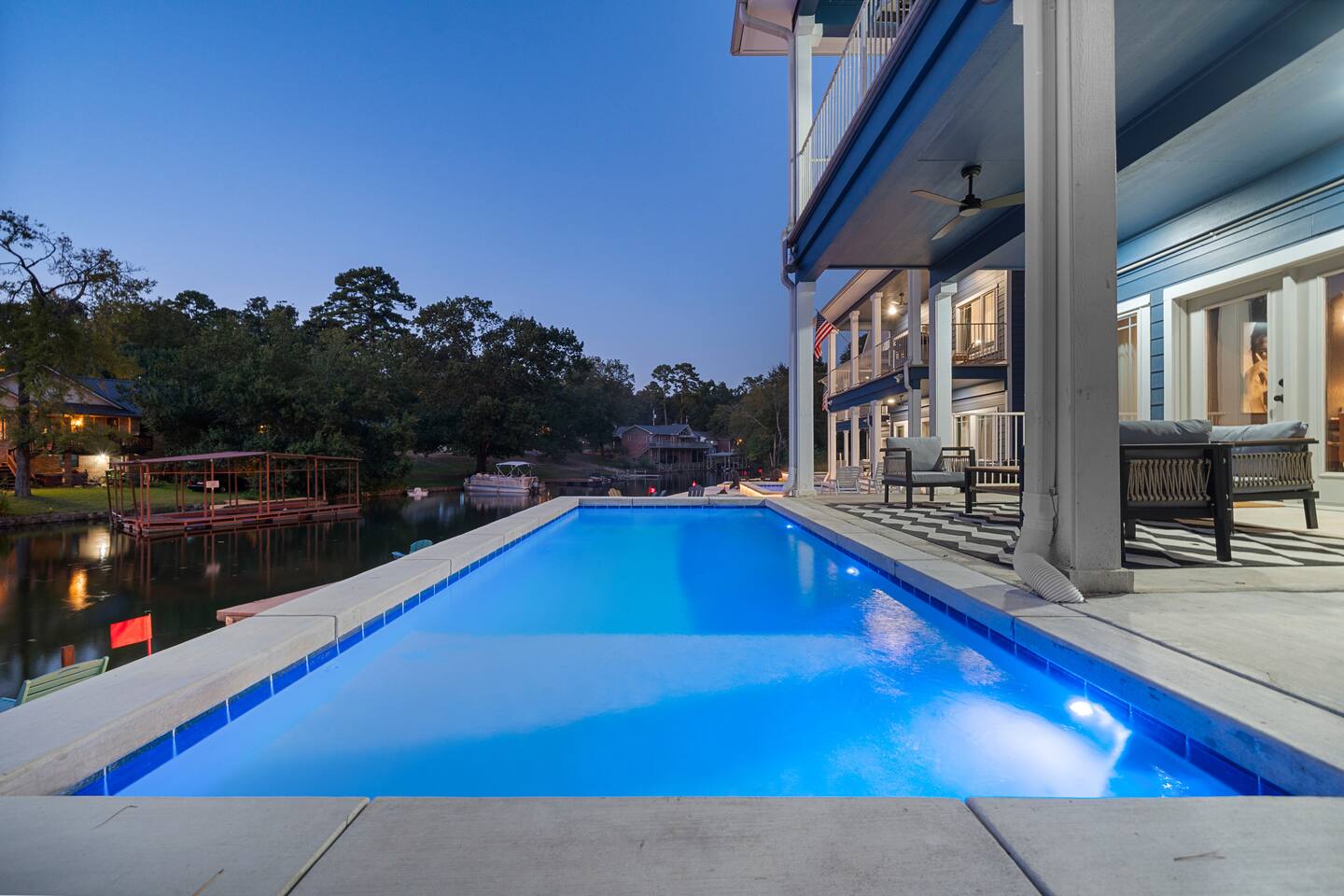 Outside, you’ll find everything you need for fun and relaxation — a boat dock for lake adventures, a plunge pool for cooling off, a hot tub for unwinding, and a putting green for a little friendly competition. Sunset cocktails by the water? Yes, please. Step inside and you’ll immediately see why this home is something special. Thoughtfully styled by a professional interior designer, every corner feels elevated yet comfortable — perfect for making memories with family or friends. The game room brings the fun indoors, with a pool table, arcade game, poker table, and wet bar that practically begs for late-night laughs. When it’s time to wind down, the custom-built bunk room steals the show. These aren’t your average bunks — they’re sleek, stylish, and built for both comfort and cool-factor. Whether you’re boating all day, hosting a poolside cookout, or cozying up for a game night, The Double Take is designed to make every moment count. What You’ll Love: ☆☆ Prime lakefront location with private dock ☆☆ Plunge pool, hot tub, and putting green with ambient lighting ☆☆ Designer interiors curated for comfort and style ☆☆ Epic game room with pool table, arcade, poker table & wet bar ☆☆ Custom-built bunk beds that guests of all ages will love ☆☆ One of three nearly identical neighboring homes — perfect for big groups or family reunions Come for the lake. Stay for the laughs. Leave with memories that make you do a double take.