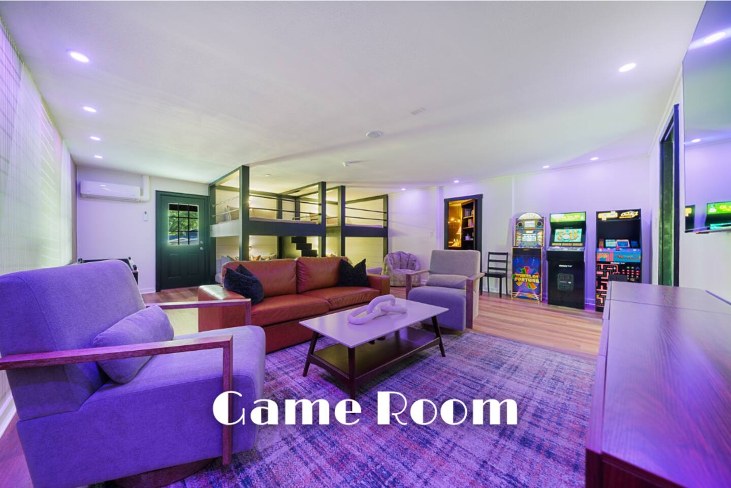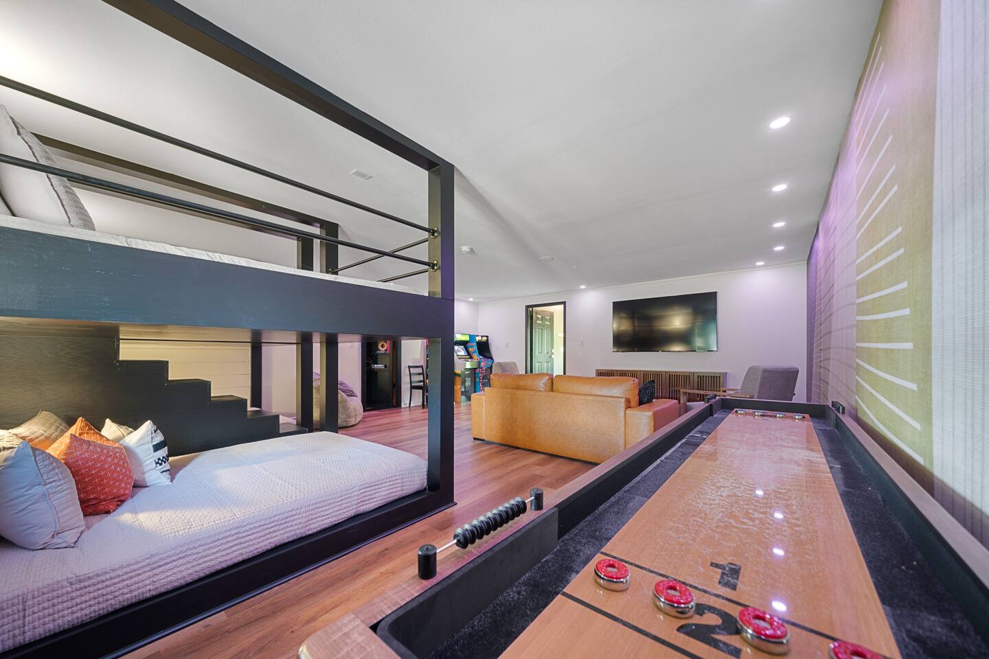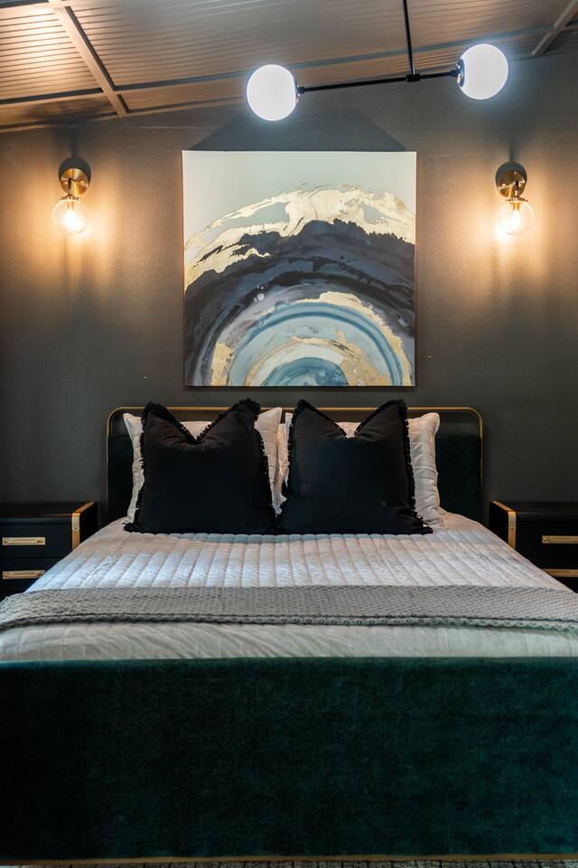 ☆☆ Welcome to MOONSHINER: A Lakefront Cabin Steeped in Prohibition Era Charm ☆☆ Escape to the lake at MOONSHINER, a beautifully updated cabin that captures the spirit of the Prohibition era. Nestled among the trees and overlooking Lake Hamilton, this retreat offers a blend of stunning elegance and historical playfulness. You’ll find yourself wondering if Capone himself once called this place home. 16 Minutes to Oaklawn Casino and Resort 17 Minutes to Downtown Hot Springs 24 Minutes to Magic Springs Theme Park KEY FEATURES: ☀ Sleeps 16: 5 bedrooms, 1 king, 3 queens + 4 queens in the custom-built bunks ☀ 2 Full bathrooms; one with soaker tub and walk-in shower ☀ Modern and well-equipped kitchen with dining table and breakfast bar ☀ A Traeger Pellet Grill and a Blackstone Griddle for grilling ☀ Boat dock, swimming pool, hot tub, fire pit, kayaks and custom swing ☀ High speed WiFi and Roku entertainment systems throughout the home ☀ Arcade games, shuffleboard and 75” Roku TV in the game room ☀ Alexa controlled smart lighting in the game room that can be changed to any color or coordinated with music or TV sounds ☀ Gorgeous lake and forest views ☀ Access to Hot Springs National Park hiking + mountain biking ☆☆ BEDROOMS ☆☆ This gorgeous lake house features four bedrooms and a special game room with custom-built queen over queen bunk beds for comfortable adult sleeping. The master bedroom has a king bed and all other beds are queens. There are 8 beds in all. The master bathroom offers a soaker tub with views of the lake, and a tiled walk-in shower. ☆☆ KITCHEN & LOUNGE ☆☆ Step inside to discover a beautifully updated interior that pays homage to the 1920s. Period decor and rich colors create a cozy ambiance that invites relaxation and enjoyment. A fully stocked kitchen await your culinary adventures, equipped with modern appliances and ample granite counter space. Energize your mornings at the coffee bar, offering drip coffee and a Keurig for a customizable caffeine fix. ☆☆ OUTSIDE SPACE ☆☆ Embrace the natural beauty surrounding you! Spend your days swimming, fishing, kayaking, or simply lounging by the water. The outdoor deck is ideal for morning coffee or evening stargazing, with fire pit for toasting marshmallows and sharing stories. Or dip in our lakefront swimming pool or relax in the hot tub on those chilly evenings. A patio TV and LED fireplace display sets the mood for evenings outdoors, while large windows provide breathtaking views of the lake. And we're the only vacation rental in Hot Springs to offer both a Traeger pellet grill and a Blackstone griddle for your grilling masterpieces! ☆☆ GAME ROOM ☆☆ Our unique game room is equipped with three arcade consoles, a shuffleboard table, a 75” Roku TV, Alexa device for streaming music, and fully customizable LED lighting that can be changed to any color with just a voice command! ☆☆ SPEAKEASY ☆☆ Immerse yourself in the history of Hot Springs with our curated vintage decor and a mini wet bar nestled in our speakeasy room, accessible through a hidden passageway. Can your guests find the hidden speakeasy room?!