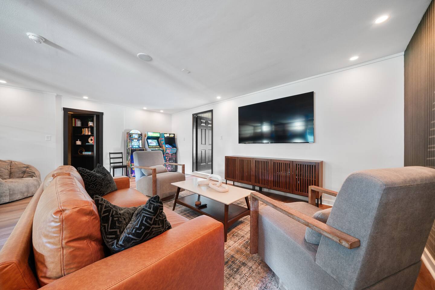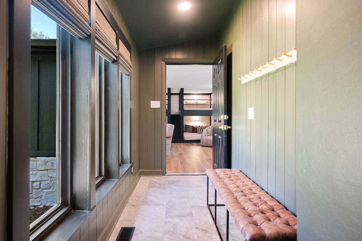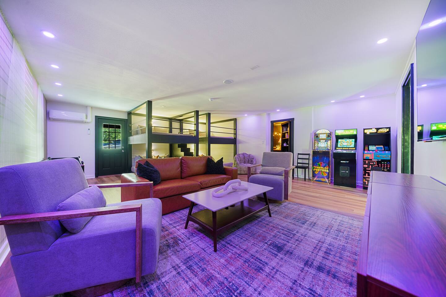 ☆☆ Welcome to MOONSHINER: A Lakefront Cabin Steeped in Prohibition Era Charm ☆☆ Escape to the lake at MOONSHINER, a beautifully updated cabin that captures the spirit of the Prohibition era. Nestled among the trees and overlooking Lake Hamilton, this retreat offers a blend of stunning elegance and historical playfulness. You’ll find yourself wondering if Capone himself once called this place home. 16 Minutes to Oaklawn Casino and Resort 17 Minutes to Downtown Hot Springs 24 Minutes to Magic Springs Theme Park KEY FEATURES: ☀ Sleeps 16: 5 bedrooms, 1 king, 3 queens + 4 queens in the custom-built bunks ☀ 2 Full bathrooms; one with soaker tub and walk-in shower ☀ Modern and well-equipped kitchen with dining table and breakfast bar ☀ A Traeger Pellet Grill and a Blackstone Griddle for grilling ☀ Boat dock, swimming pool, hot tub, fire pit, kayaks and custom swing ☀ High speed WiFi and Roku entertainment systems throughout the home ☀ Arcade games, shuffleboard and 75” Roku TV in the game room ☀ Alexa controlled smart lighting in the game room that can be changed to any color or coordinated with music or TV sounds ☀ Gorgeous lake and forest views ☀ Access to Hot Springs National Park hiking + mountain biking ☆☆ BEDROOMS ☆☆ This gorgeous lake house features four bedrooms and a special game room with custom-built queen over queen bunk beds for comfortable adult sleeping. The master bedroom has a king bed and all other beds are queens. There are 8 beds in all. The master bathroom offers a soaker tub with views of the lake, and a tiled walk-in shower. ☆☆ KITCHEN & LOUNGE ☆☆ Step inside to discover a beautifully updated interior that pays homage to the 1920s. Period decor and rich colors create a cozy ambiance that invites relaxation and enjoyment. A fully stocked kitchen await your culinary adventures, equipped with modern appliances and ample granite counter space. Energize your mornings at the coffee bar, offering drip coffee and a Keurig for a customizable caffeine fix. ☆☆ OUTSIDE SPACE ☆☆ Embrace the natural beauty surrounding you! Spend your days swimming, fishing, kayaking, or simply lounging by the water. The outdoor deck is ideal for morning coffee or evening stargazing, with fire pit for toasting marshmallows and sharing stories. Or dip in our lakefront swimming pool or relax in the hot tub on those chilly evenings. A patio TV and LED fireplace display sets the mood for evenings outdoors, while large windows provide breathtaking views of the lake. And we're the only vacation rental in Hot Springs to offer both a Traeger pellet grill and a Blackstone griddle for your grilling masterpieces! ☆☆ GAME ROOM ☆☆ Our unique game room is equipped with three arcade consoles, a shuffleboard table, a 75” Roku TV, Alexa device for streaming music, and fully customizable LED lighting that can be changed to any color with just a voice command! ☆☆ SPEAKEASY ☆☆ Immerse yourself in the history of Hot Springs with our curated vintage decor and a mini wet bar nestled in our speakeasy room, accessible through a hidden passageway. Can your guests find the hidden speakeasy room?!