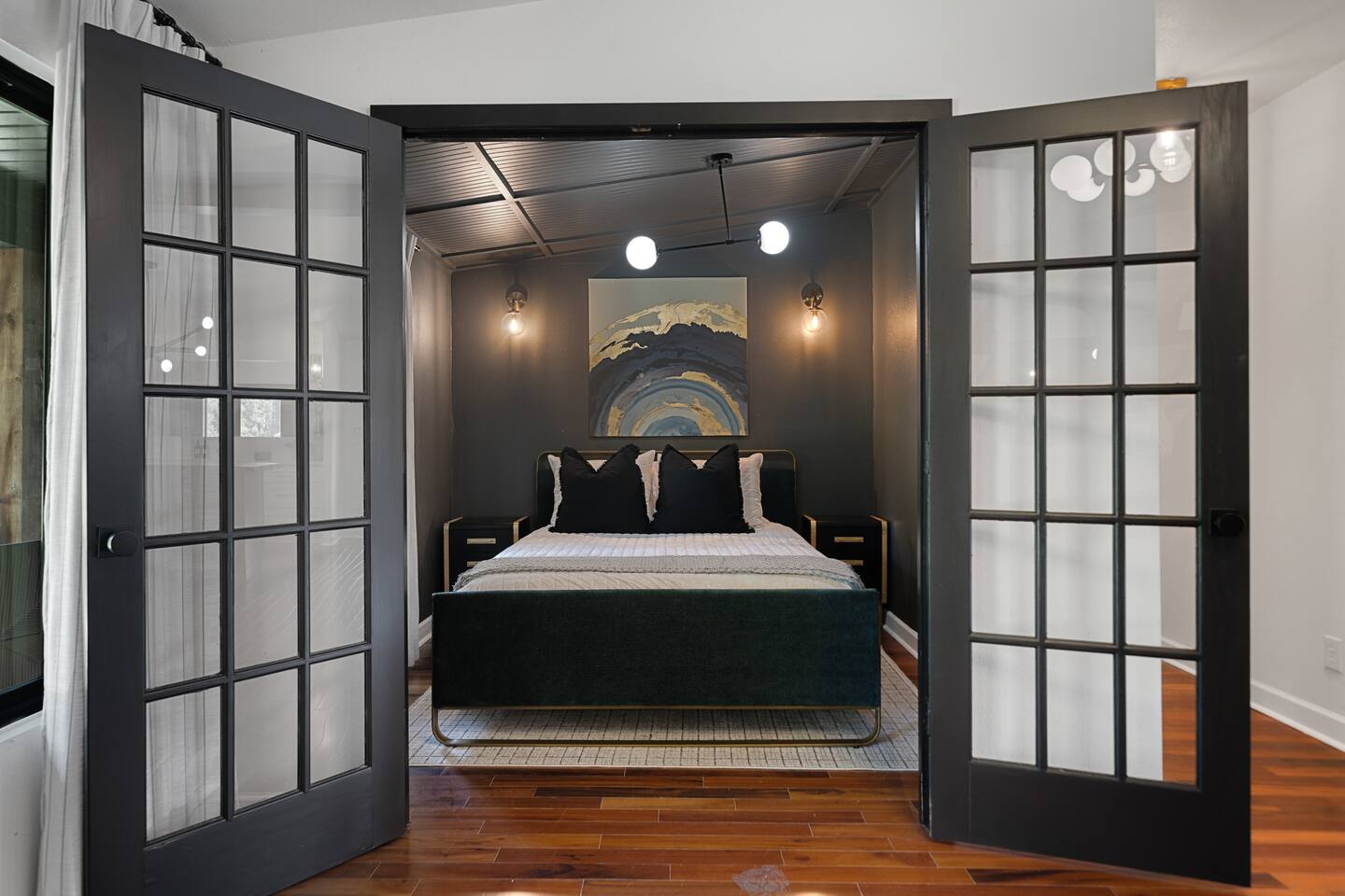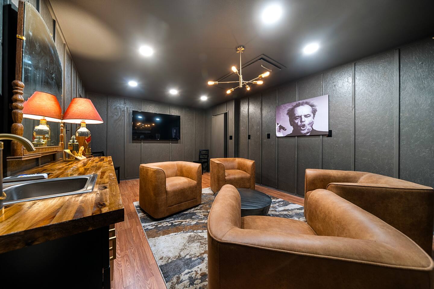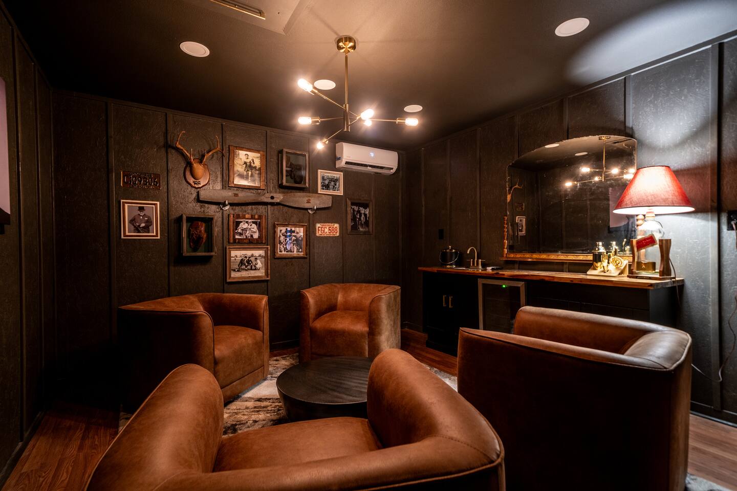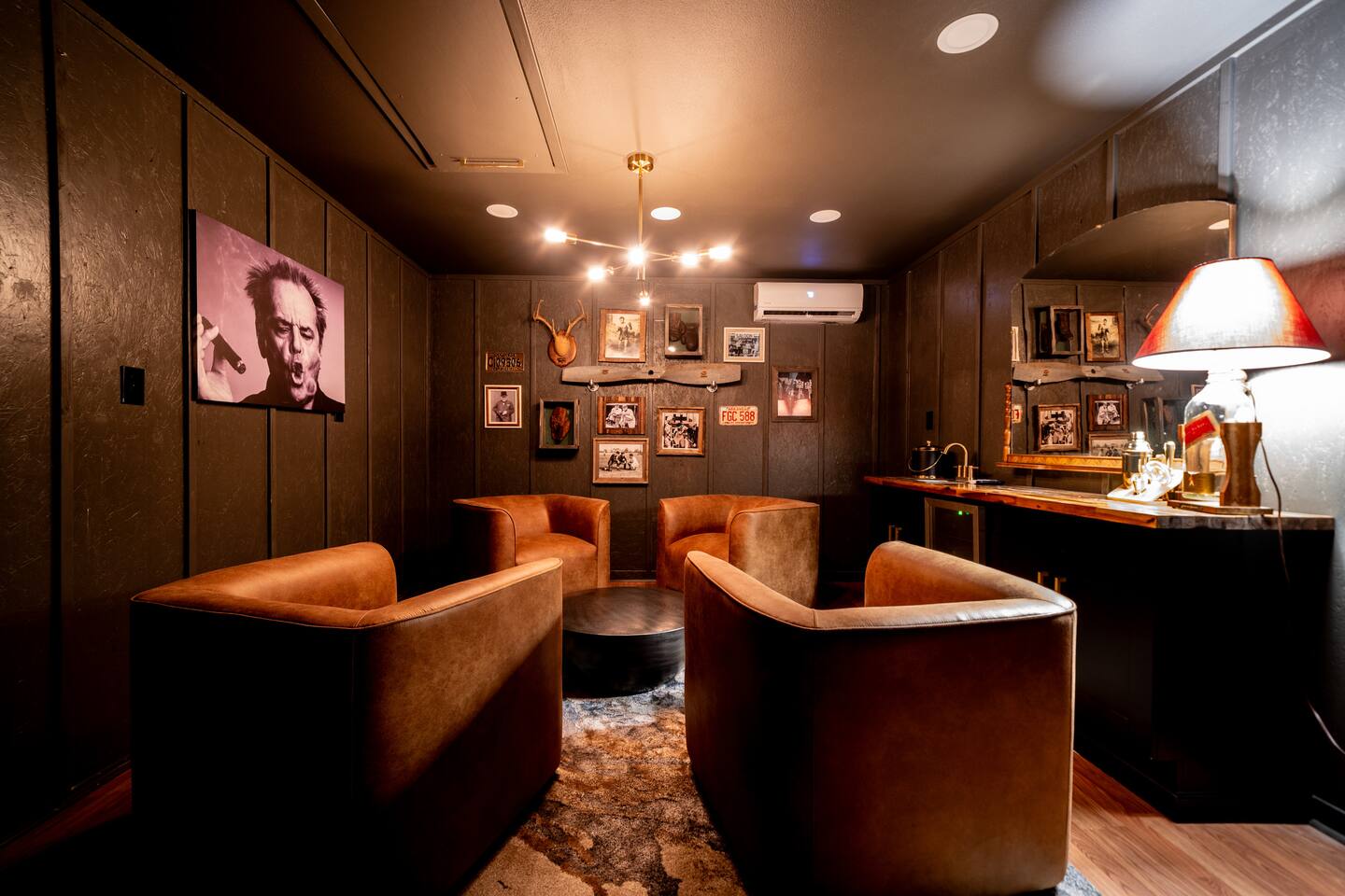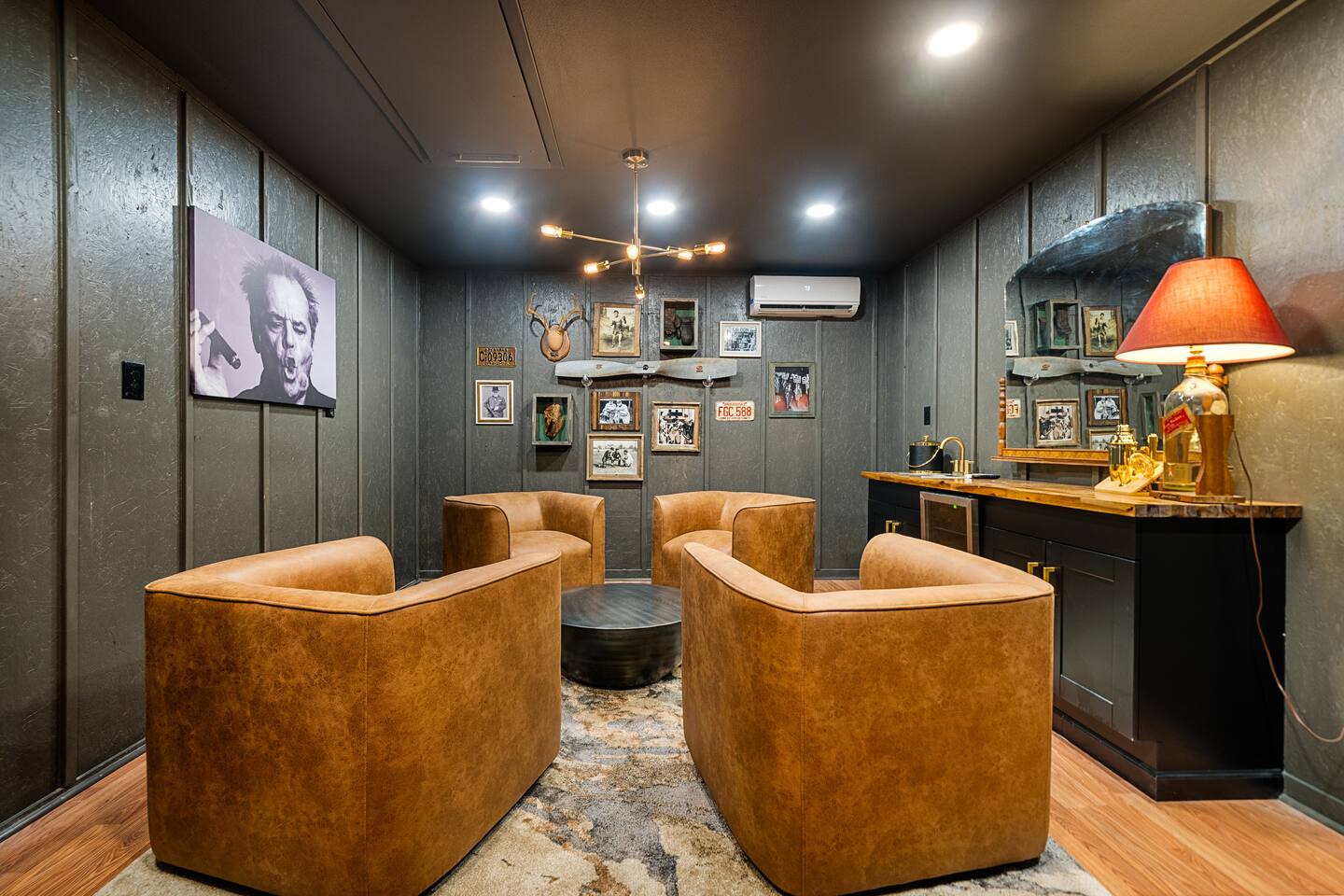 CELEBRATE YOUR HOLIDAYS HERE! Welcome to MOONSHINER: A Lakefront Cabin Steeped in Prohibition Era Charm Escape to the lake at MOONSHINER, a beautifully updated cabin that captures the spirit of the Prohibition era. Nestled among the trees and overlooking Lake Hamilton, this retreat offers a blend of stunning elegance and historical playfulness. You’ll find yourself wondering if Capone himself once called this place home.