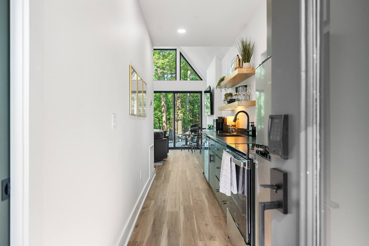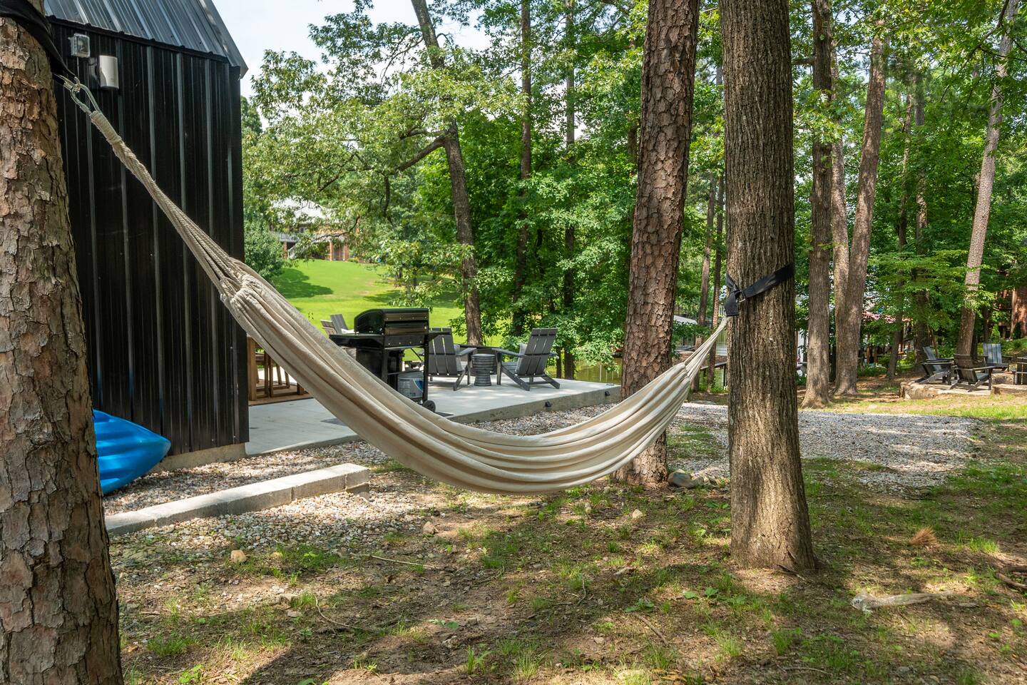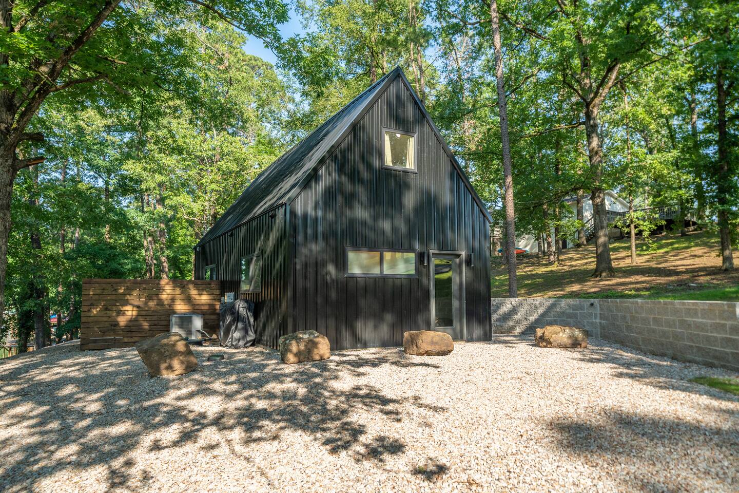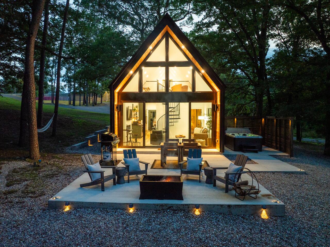 Onyx is one of the few luxury tiny cabins directly on Lake Hamilton! The soaring floor-to-ceiling windows flood the space with natural light, showcasing the designer décor and cozy electric fireplace. Relax on the spacious deck with a fire pit, soak in the private hot tub, or swing in the hammock under the towering pines. Inside, enjoy a fully equipped kitchen, plush bedding, and a loft-style master bedroom with beautiful forest views. With complimentary kayaks and an inviting outdoor living area, Onyx offers the perfect escape for a luxurious stay on Lake Hamilton. Nestled in the heart of nature yet conveniently close to everything, Onyx offers the best of both worlds. Just 11 minutes from the vibrant historic downtown, 10 minutes from Oaklawn Casino and Racing, and 18 minutes from the thrills of Magic Springs Theme Park, this cabin makes it easy to enjoy all the area’s attractions while returning to your private lakeside haven. ☆☆ Property Features ☆☆ ☆ 2 Bedrooms, 1 Bathroom (both queen beds) ☆ Lake Views ☆ Designer Décor ☆ Spacious Deck with Outdoor Seating ☆ Fire Pit ☆ Hammock ☆ Private Hot Tub ☆ Complimentary Kayaks ☆ Smart TV ☆ High-Speed WiFi ☆ Fully Equipped Kitchen ☆ Electric Fireplace ☆ Air Conditioning & Heating ☆ Modern A-Frame Architecture Come experience the magic of Onyx and create unforgettable memories by the lake!