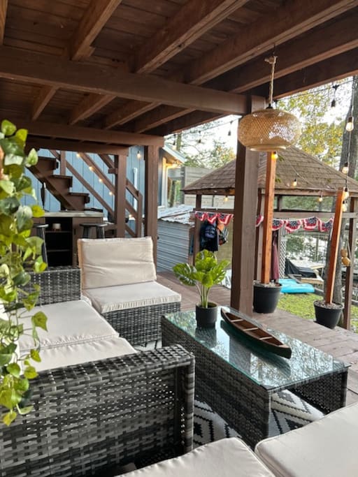ROCK ’N’ ROLL LAKE HAUS Embrace the harmonious blend of nature and music at our one-of-a-kind, two story lake house retreat for outdoor enthusiasts and music lovers alike. Immerse yourself in the rock 'n' roll ambiance with our collection of vinyl records, musical decor and books celebrating the legends of music. 3-Layered deck overlooking the lake is perfect for morning coffee and beautiful sun sets. Enjoy fishing, kayaking, swimming and historical Hot Springs, Arkansas just minutes away.