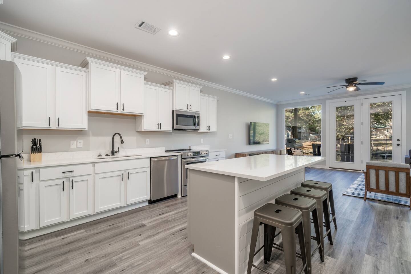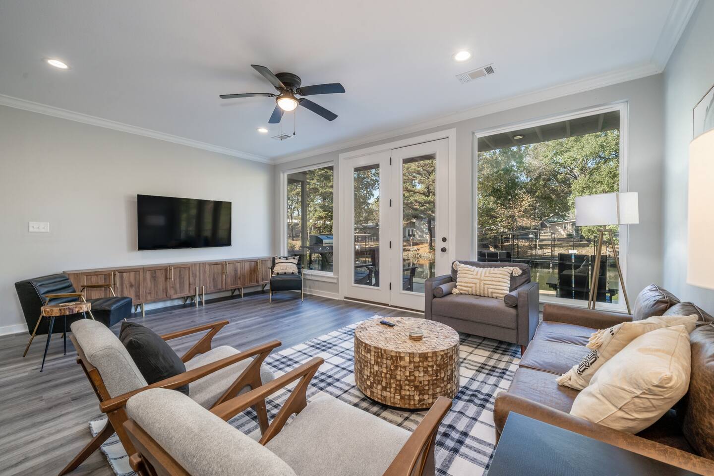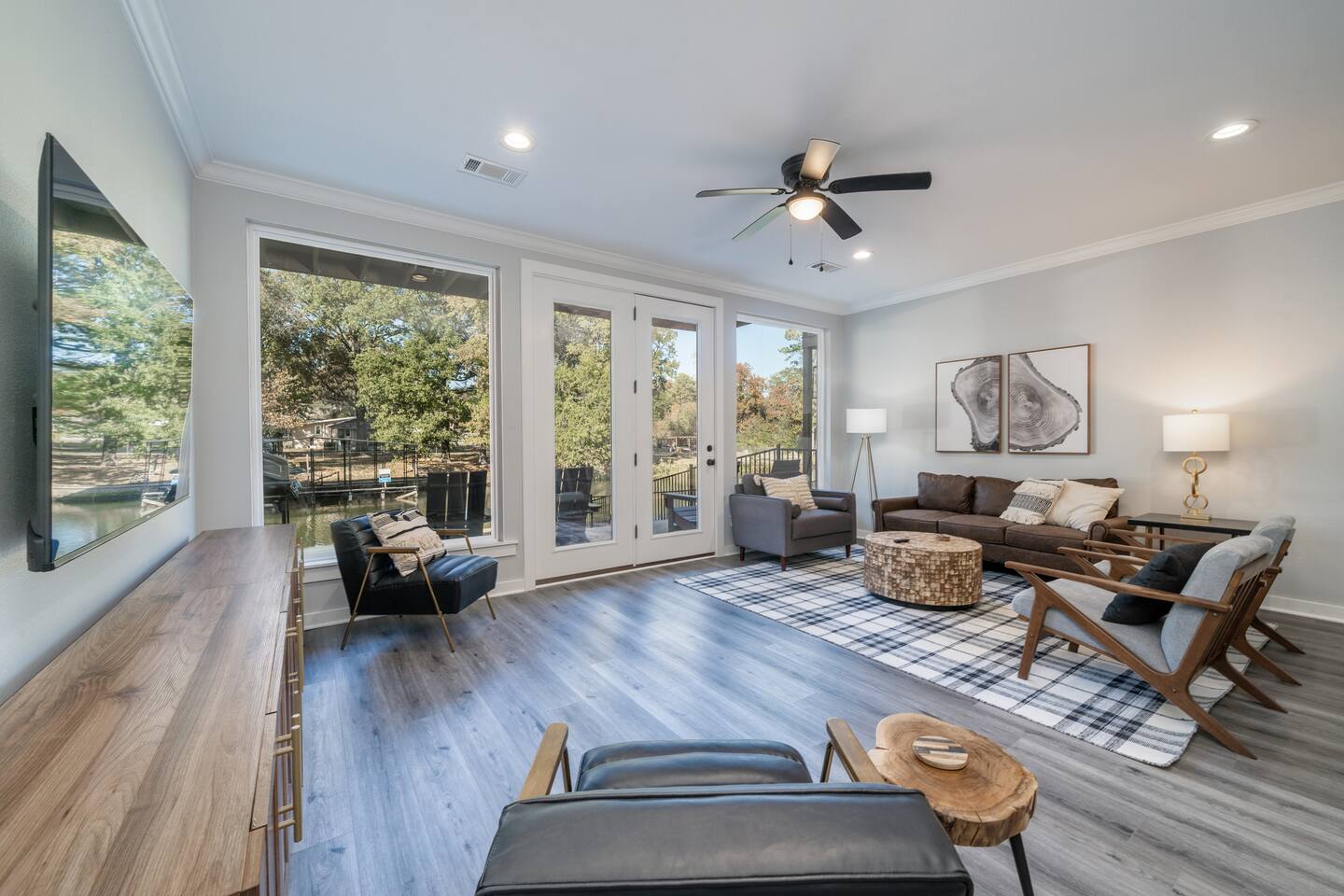 CELEBRATE YOUR HOLIDAYS HERE! Enjoy an unforgettable lakeside escape at our stylish 4-bedroom retreat! With direct water access, spacious living areas, and an amazing game room, this home is perfect for families and friends. Relax on expansive covered decks, paddle with complimentary kayaks, and create lasting memories at this exceptional lakefront haven.