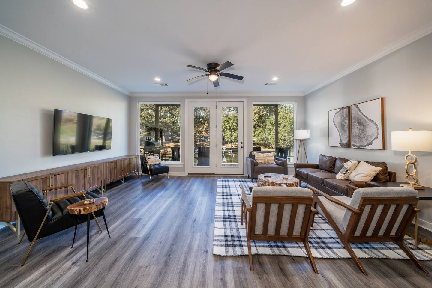 Our thoughtfully designed home features flexible sleeping arrangements perfect for groups: a luxurious Master Bedroom with King Bed, a cozy Queen Bedroom, a fun Twin Bunk Bedroom, and a versatile Queen Bunk Bedroom. Strategically located near Oaklawn, Bathhouse Row, Magic Springs, Crystal Falls, and Garvin Gardens, you'll have the ultimate home base for exploring Hot Springs. We warmly welcome families and adult groups 25+ seeking a memorable lakeside getaway. To ensure a peaceful experience, we kindly request no student groups, parties, or unregistered guests. ***Please note the annual Lake Hamilton water level changes: drawdown begins November 1st, with lake refill scheduled between March 1st-15th.